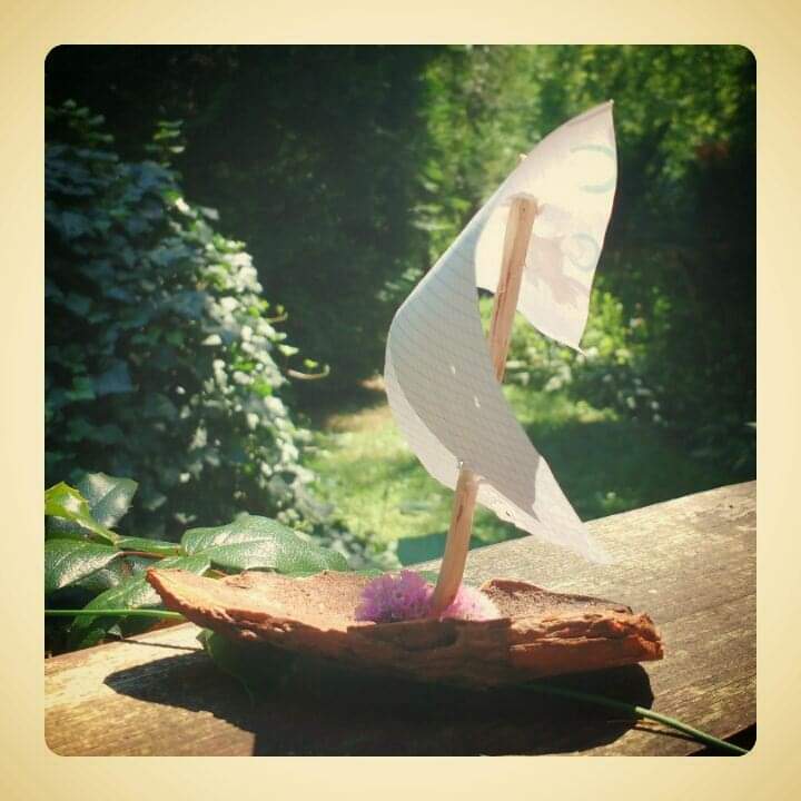 Lato zaczynało się w porannym chłodzie, pod słońce, wśród szyszek i jagód. Tata przynosił z lasu wielkie kawałki kory, siadał z nami na ganku, na pniu starej sosny, na drewnianych schodkach. Patrzyłyśmy w skupieniu jak wyjmuje z kieszeni scyzoryk, otwiera najdłuższe ostrze, i ze spróchniałego drewna zaczyna czarować łódkę. Ledwie wyłaniał się kadłub, a w oddali zaczynała szumieć woda: Bałtyk, Wisła, Narew, Zalew Zegrzyński. Przyzywała łódkę od chwili, w której przeczuła zalążek jej istnienia. Tata strugał podłużne kształty, później wsuwał w szczelinę gładki patyczek, a my wyrywałyśmy kartkę z zeszytu i zawieszałyśmy ją jak żagiel. Do środka wkładałyśmy kwiaty i biegłyśmy na brzeg, za głosem łódki, który chciał dołączyć do wodnych pieśni.